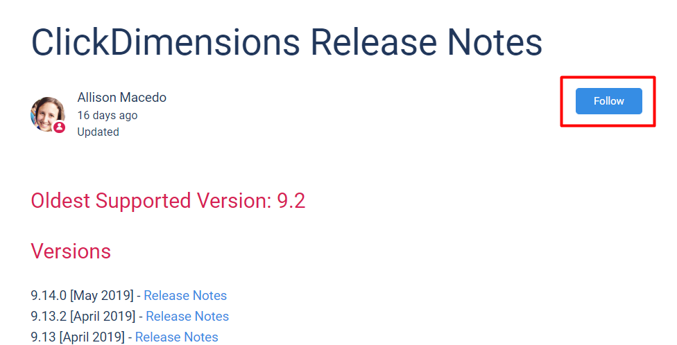 Finally, I highly recommend following the Release Notes for the ClickDimensions product as all bug fixes and new features are documented for each monthly release. The release notes for all our releases are found here.