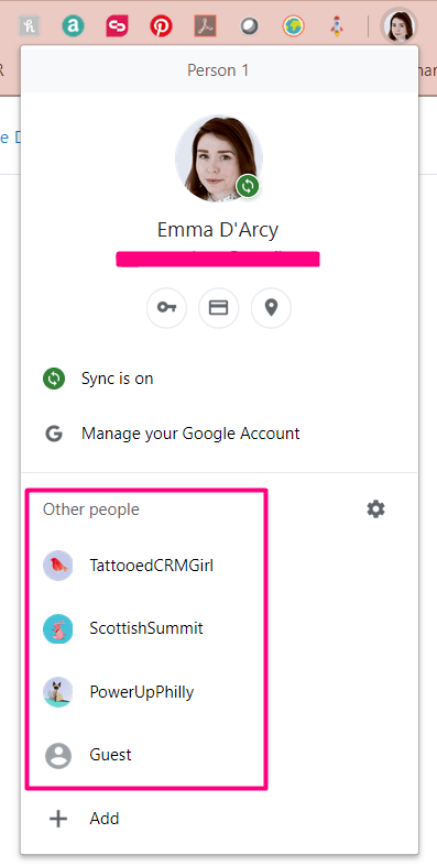 So if you’re not familiar with Google Profiles, let’s talk about how to set this up! In the upper right corner of Google Chrome, you’ll see your account icon