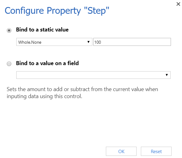 So in this case, each movement of the slider will increase or decrease the value of the field by 100. Next we have to determine which versions of this form will the control appear on: