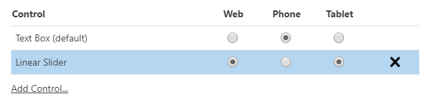 This is a standard option across all controls – we have the option to determine if this control appears on this form on the Web client, phone or tablet. In some cases, the phone may not be suitable format for a control, the smaller space may make certain controls difficult to interact with.
