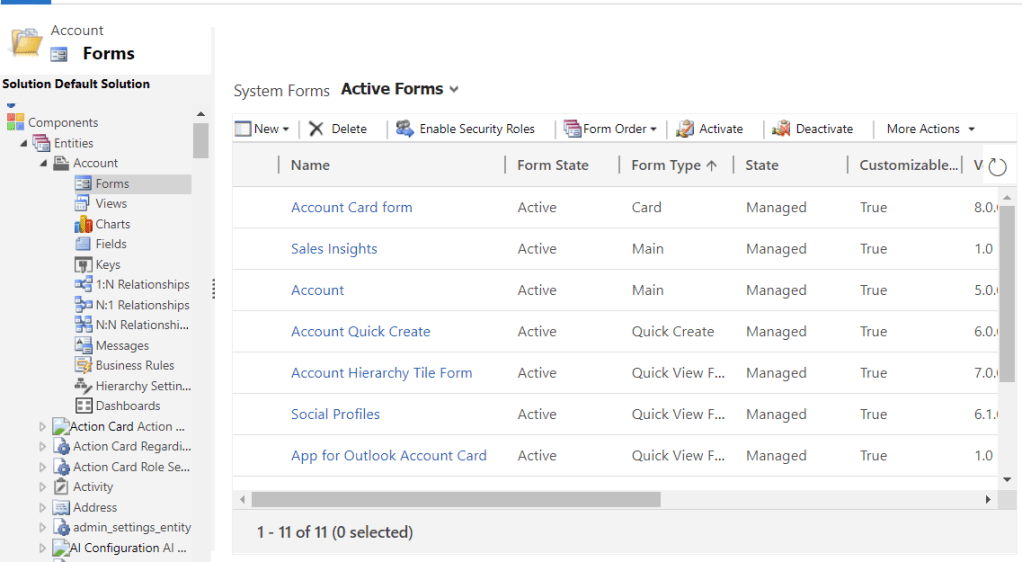 It’s important to note that the control can only be applied at a form level. At the time of writing, most custom controls (if not all, please feel free to correct me on this) are still only available in the classic customisation interface. From here, we’ll access the form we want to apply the control to: