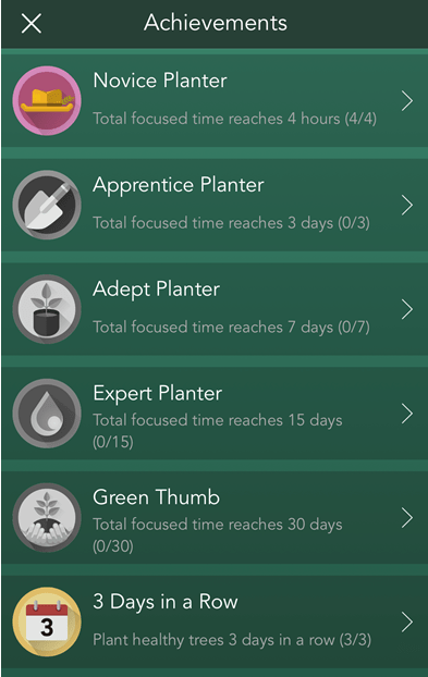 As a gamer, I really appreciate the cool gamification features Forest has. I enjoy that I can plant various trees in my forest that is aesthetically pleasing to me. I also enjoy that I earn coins for each focus period I complete. This also allows me to unlock and purchase other cool trees to plant and other ambient sounds to listen to. There’s also a wonderful achievement list and as a self confessed 100%-er, I benefit from the satisfaction of Achievement Unlocked while being productive.